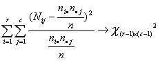Sea n una muestra que se clasifica según A y B, cada uno de los cuales tiene r y c categorías. Además, sea Nij el número de observaciones de las categorías i, j de A y B. Se pueden tabular los datos en una matriz de r x c. El total del i-ésimo renglón es la frecuencia de la i-ésima categoría de A, de manera similar para las columnas. Sea