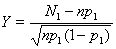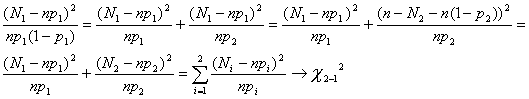 Para deducir una prueba estadística para H0, considérese el caso de k = 2. Este es el caso de la distribución binomial con x = n1, p = p1, n-x =n2 y 1-p =p2. Sea la variable aleatoria estandarizada: