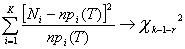 Nótese que Ni es la frecuencia observada en la i-ésima clase y npi la esperada bajo la hipótesis nula.