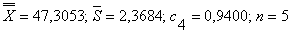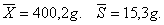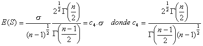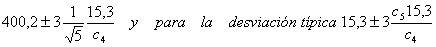 Siendo c4=0,94. Lo que da: 378,362655 y 422,037345 para la media y 0 a 31,9594754 para la desviación típica.