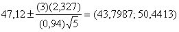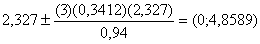 (0,94).2±(3)(0,3412)(2) lo que da el intervalo (- 0,1673 ; 3,9273 ) ;es decir, (0; 3,9273).