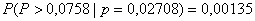 c) Supuesto que el porcentaje es 0,0271, la probabilidad de que un día determinado el proceso se juzgue fuera de control es: