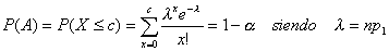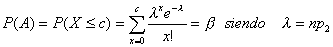 La probabilidad de obtener un valor de la media muestral fuera de los límites de control si el proceso se encuentra realmente bajo control es: