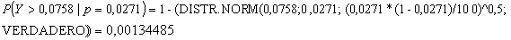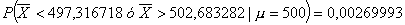 valor que se obtiene de 1-(DISTR.NORM(502,683282;500;2/5^0,5;VERDADERO)-DISTR.NORM(497,316718;500;2/5^0,5;VERDADERO))