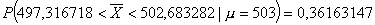 valor que se obtiene: =(DISTR.NORM(502,683282;503;2/5^0,5;VERDADERO)-DISTR.NORM(497,316718;503;2/5^0,5;VERDADERO))