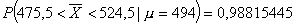 b) La probabilidad de no detectar un corrimiento de la media de 500 a 494 es igual a