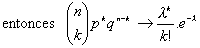 En general si n>50 y p<0.1 ó n.p<5 la distribución de Poisson es una buena aproximación de la Binomial.