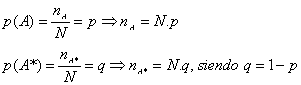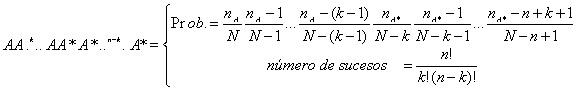 Consideremos una población de N elementos de dos clases A y A* excluyentes, de los cuales nA son de la clase A y nA* son de la Clase A*, con nA + nA* = N.