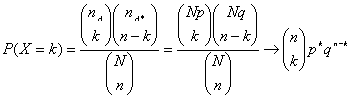d) Si N es grande respecto de n, las probabilidades varían muy poco de una prueba a la siguiente, por lo que en estos casos se puede decir que la variable hipergeométrica sigue aproximadamente una distribución binomial, es decir: