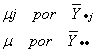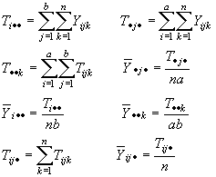 son, respectivamente, la media real del i-ésimo nivel de A; la media real del j-ésimo nivel de B; la media real del tratamiento (i, j).