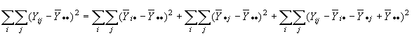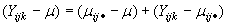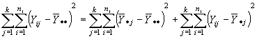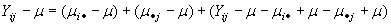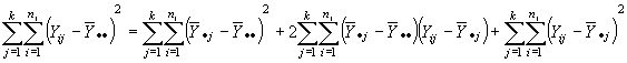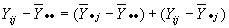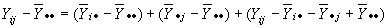 Donde se ha descompuesto la desviación de una observación con respecto a la media total de la muestra en dos componentes, la desviación de la media del tratamiento con respecto a la media total y la desviación de la observación con respecto a la media del tratamiento.