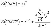 Puede demostrarse que bajo las suposiciones del modelo y la hipótesis nula H0: tj = 0; los cocientes SCTR/s2 y SCE/s2 son dos variables aleatorias independientes con una distribución de probabilidad chi-cuadrado con (k-1) y (n-1)(k-1) grado de libertad. También puede demostrarse que los valores esperados de los cuadrados medios del error y los tratamientos son: