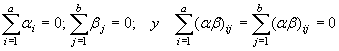 Como antes, se supone que las varianzas de la población para cada uno de los ab tratamientos son iguales, y que los errores aleatorios son variables aleatorias, normalmente distribuidas, con medias iguales a cero y varianza común s2. Si se supone que los factores A y B son de efectos fijos, entonces ai, bj, y (ab)ij son parámetros fijos tales que: