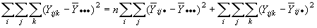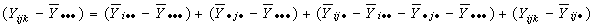 Esta igualdad establece que la desviación de una observación con respecto al promedio global está formada por 4 componentes: las desviaciones causadas por el efecto principal de A; por el efecto principal B; por el efecto de la interacción entre A y B; por el error aleatorio.