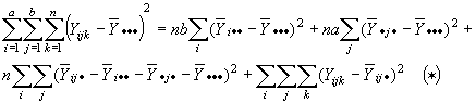 En esta forma, la desviación debida a los tratamientos abarca los efectos debidos a A, B y la interacción AB. Al sustituir los correspondientes estadísticos se tiene: