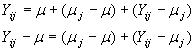 Esta última igualdad establece que cualquier desviación de una observación con respecto a la media global se debe a dos posibles causas: A la diferencia en el tratamiento o a un error aleatorio.