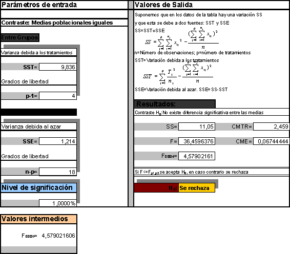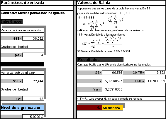 c) Determínese el análisis de la varianza y obténgase las conclusiones apropiadas, para a=0,05.