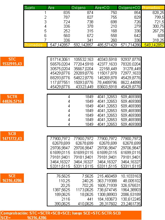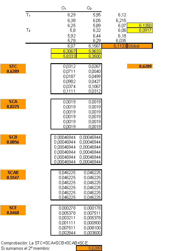 Un estimador de s2 es CME=0,000075 y un estimador de s2 +5 st2 es CMTR=0,001565. En otras palabras
