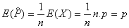 donde X es binomial con parámetro n y p. Nótese que s u estimador insesgado de p, ya que