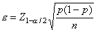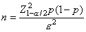 Se ha obtenido n en función de p, el parámetro que se desea estimar. Dado que este no se conoce de antemano, lo que de manera generalizada se hace es escoger el valor más conservador de n. Esto ocurre cuando la cantidad p(1-p) es máxima, es decir cuando p=1/2.