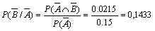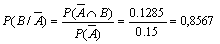 b) P(B1/ND)=P(B1ÇND)/P(ND)=0,475/0,92=0,5163. También se puede aplicar directamente el teorema de Bayes.