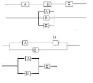 10. Un sistema contiene tres componentes A, B y C. Éstos pueden conectarse en una, cualquiera, de las cuatro configuraciones mostradas en la figura 2.3. Si los tres componentes operan de manera independiente y si la probabilidad de que uno, cualquiera de ellos, esté funcionando es de 0.95, determinar la probabilidad de que el sistema funcione para cada una de las cuatro configuraciones.