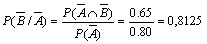 P((A Ç B) È(A ÇB*) È(A*Ç B))=P(A Ç B)+P(A ÇB*)+P(A*Ç B)=0.81+0.09+0.09 =0.99