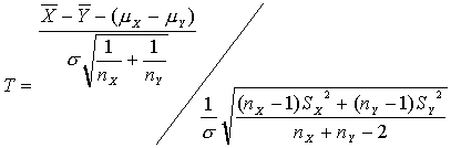 Se ha supuesto que s es conocido. Sin embargo, es poco probable que esto suceda. Por tanto para el caso en el que el muestreo se lleve a cabo sobre dos poblaciones normales independientes con varianzas iguales pero desconocidas, para cada una de las muestras obtenidas pueden definirse las varianzas muestrales definidas S2X y S2Y y dado que