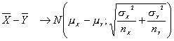 sigue una distribución normal de media mX-mY y varianza 12. s2/nX + (-1)2.s2/nY