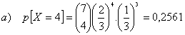 binomial de parámetros n=7; p=2/3: B(7; 2/3).