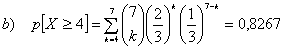 b) p[(X=1)È[(X=3)È[(X=5)]=0,3955+0,0879+0,0010=0,4844.