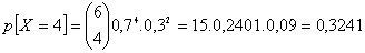binomial de parámetros n=6 y p=0,7. Por tanto, la probabilidad p[X =0] =0,36=0,000729.