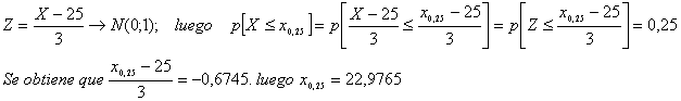 11. Hallar el primer y el tercer cuartil en una distribución N(25,3).