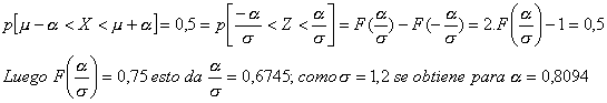 se obtiene P50=266; p[X<P75]=0,75 se obtiene P75=276,7919.