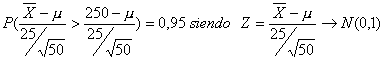 6. En la producción de cierto material para soldar se sabe que la desviación típica de la 25 Kg . ¿Cuál debe ser la tensión de ruptura promedio del proceso si, con base a una muestra aleatoria de 50 unidades, la probabilidad de que la media muestral tenga un valor superior a 250 kg es de 0,95?