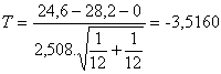 La probabilidad de que P(T£t0)=P(T£ -3,5160) en una t_Student con 22 grados de libertad vale: P(T £-3,5160)= 0,00097. Lo que es sumamente improbable, en consecuencia parece más aceptable rechazar que las media son iguales.