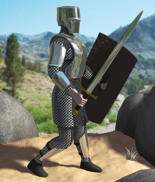 | By the way, the 'enviroment' was thrown together very fast, and is really only there to provide reflections for the metalic materials. I don't wanna hear anything about the blocky stones! ;) Also the face expression was left in the default "blank, straight ahead" stare.. that could have been better I know, Click the face picture in the upper right portion of this page for some earlier "face expression" tests. | ||||||||||||||||||||||||||||||||