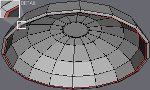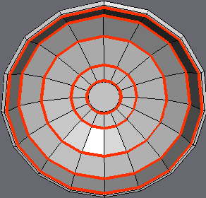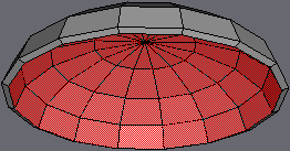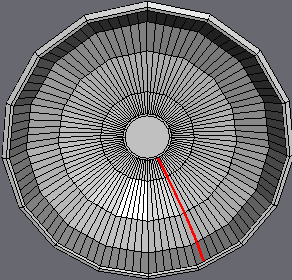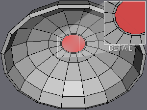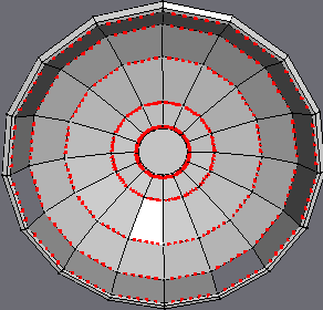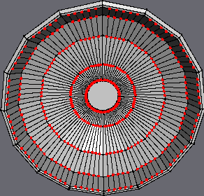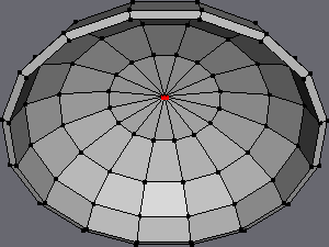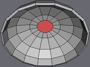 | If you're wondering why this is done.. Later on we'll be extruding the stem from this place. And since we'll need to break up the geometry alot to accommodate the gills, we Inset the center face at this time to create a small "border region" between the stem and gills, so that the extruded stem won't be excessively high-poly (due to the highly dense geometry made for the gills). |