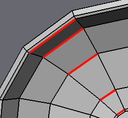 | [14] Now switch back to edge mode, and select any of these four edges (again carefull not to select edges in the small "border regions"), and then hit the G key (Edge Ring) to select all the rest. | |||||||||||||||||||||||||||||||||||||||||||||||||||||||||||||||||||||||||||||||||||||||||||||||||||||||||||||||