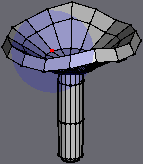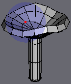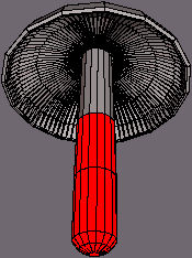 | If you now enter the smooth preview mode (Shift + Tab) you'd notice some shading "artifacts" near the top of the stem (well actualy there are multiple problems, but I never said the 'shroom was perfect :P). If you want to get rid of those, do the following.. [Fix 1] Zoom in to near the top of the stem and select any of the edges in the small "border region" and hit the I key (Select Similar) to select them all |