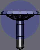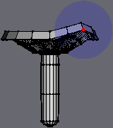| [21] Now.. We're gonna make the stem by extruding downwards.. values aren't too important, just extrude it down a few times so that the stem is broken up vertically to allow us to bend it a little later on. For example, I have it broken into 3 major sections (not counting the taper-off at the bottom). What I did was... Right Click > Extrude, stop and Right Click > Scale Uniform each time (to vary the size a bit). But you could just as easily extrude a few times (hitting the D key (Repeat Last Command) each time), or extrude the full length of the stem in one go and break it up later.. and only then adjust the size. I'll leave that up to you, hopefully it's basic enough for anyone to handle. If not just e-mail me and I suppose I could do a step-by-step. But the point is you should end up with something like this. |
