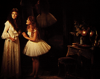 Meg Giry was Christine's 'best friend'. When Christine falls out of step during the rehearsals for 'Hannibal', she asks what is wrong, and then nominates her to sing when Carlotta leaves unpextedly. She is a 'promising dancer'and is Madame Giry's daughter, which often involves her in the opera's affairs. After Christine's first lead performance, she follows her to her dressing room, and then proceeds to ask her who her new tutor is. When Christine replies with stories of an Angel Of Music, she tells her nervously that she hears her voice in the darkness, but the words aren't hers! Meg's mother interrupts and tells her to practise her dancing. When Christine goes missing, she appears with her mother to break the news that Christine has returned, and when the managers then refuse the opera ghosts demand to place Christine in the lead role in 'Il Muto', she is afraid of what will happen, and tries to tell them all what she knows, but her little voice is drowned out!