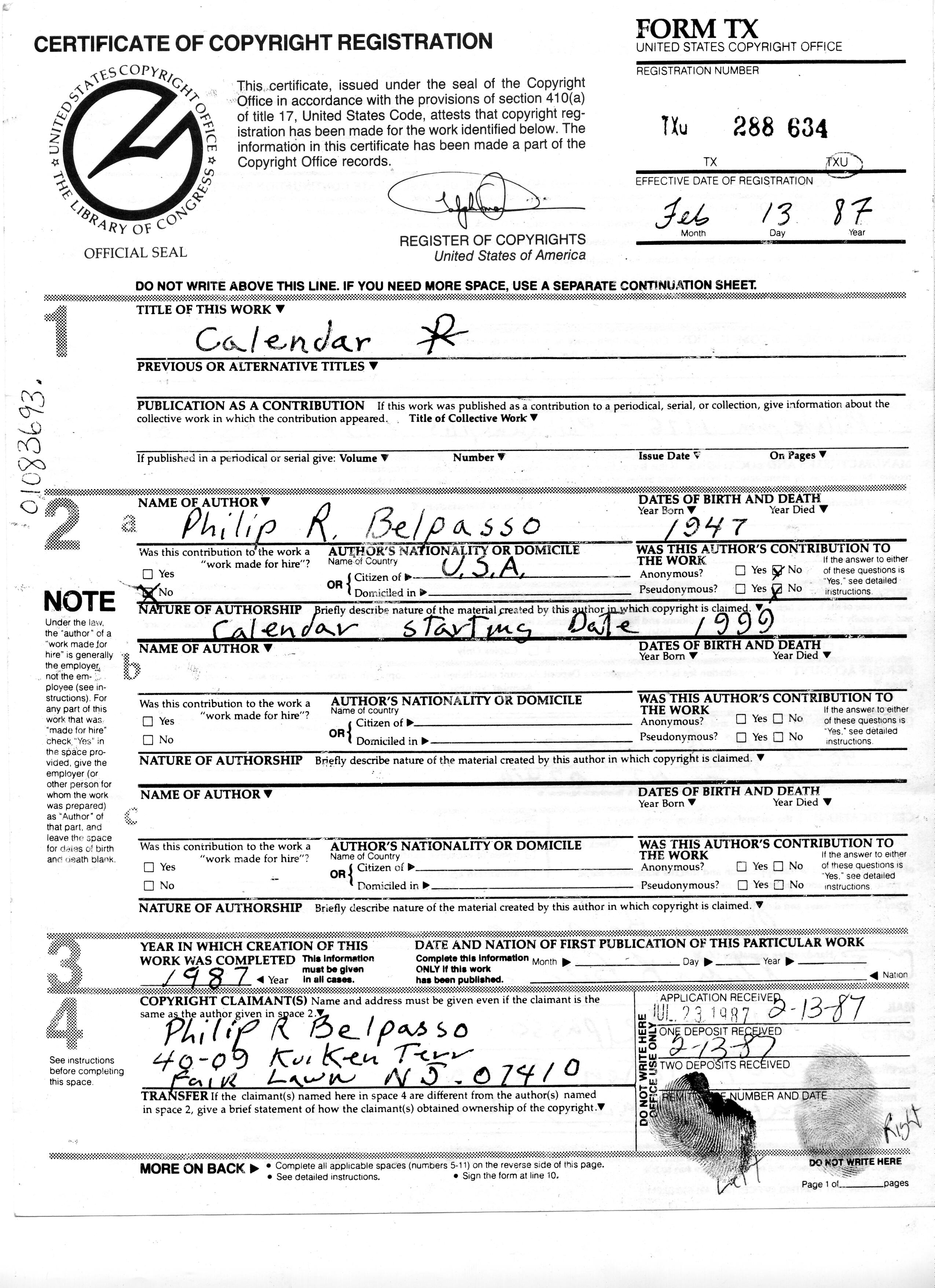 This is the filed copyright on the bottom there is a thumb print of the author.