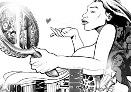 bears the image of a naked woman holding a mirror