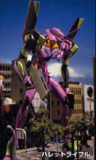 Palette Rifles. Used mainly by Evangelion Unit 01, these are the normal rifles used in battle. At the first kinds of Angels, the rifle was the weapon of choice for all Evangelions. However, they proved pretty useless in destroying the Angel in all but one occasion: the acid drooling Angel. | |