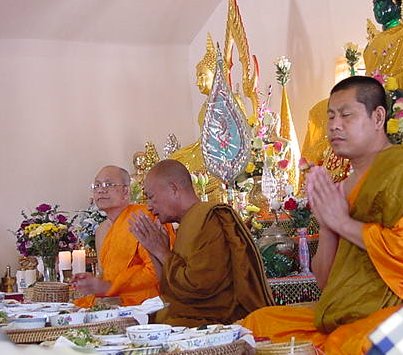 | [left - right] Ajan B. Sirivongsack joined Wat Lao Soudharam in the spring of 2002. His last post was in Chicago. Ajan S. Simsombath has been with Wat Lao Thammaram since its inception in 1997. Ajan V. Dipraseuth joined us in 2001 from Cranberra, Australia. |