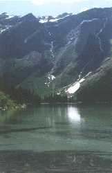 The following pictures were taken on a business trip to Montana in August of 96. We were able to take a small side trip to Glacier National Park. As you can see, the scenery was spectacular! This is a picture of Jay Rountree and myself. Jay in my opinion, is one of the best data cable engineers in the Sacramento valley. He also teaches at the UC Davis Ext.