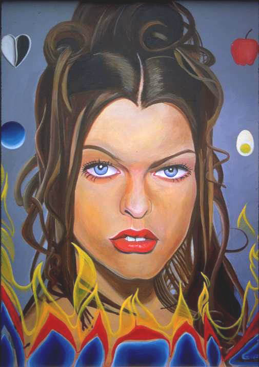 Milla Jovovich, a portrait painting by Rick calzadilla