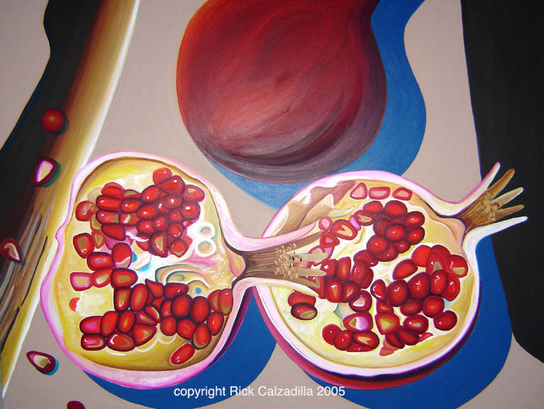 "Pomegranate the new super fruit" Painting by Rick Calzadilla Austin Texas U.S.A