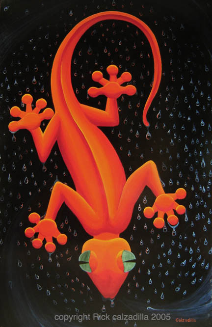 Fine Art paintings Rick Calzadilla Austin,Texas. animals abstarcts. "Red Gecko"